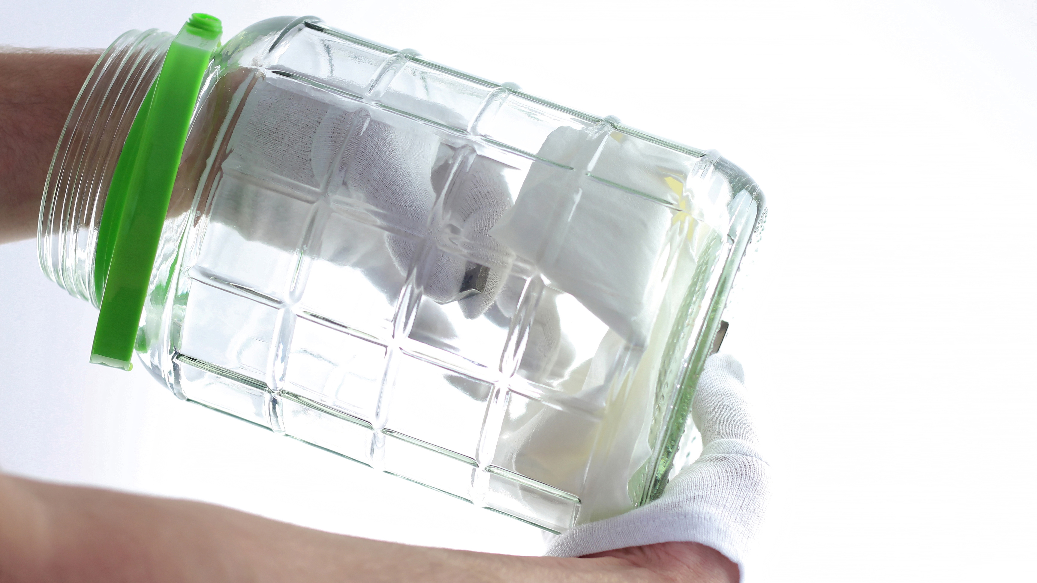 1. Put the gauze at the bottom of the jar and secure it using magnets.