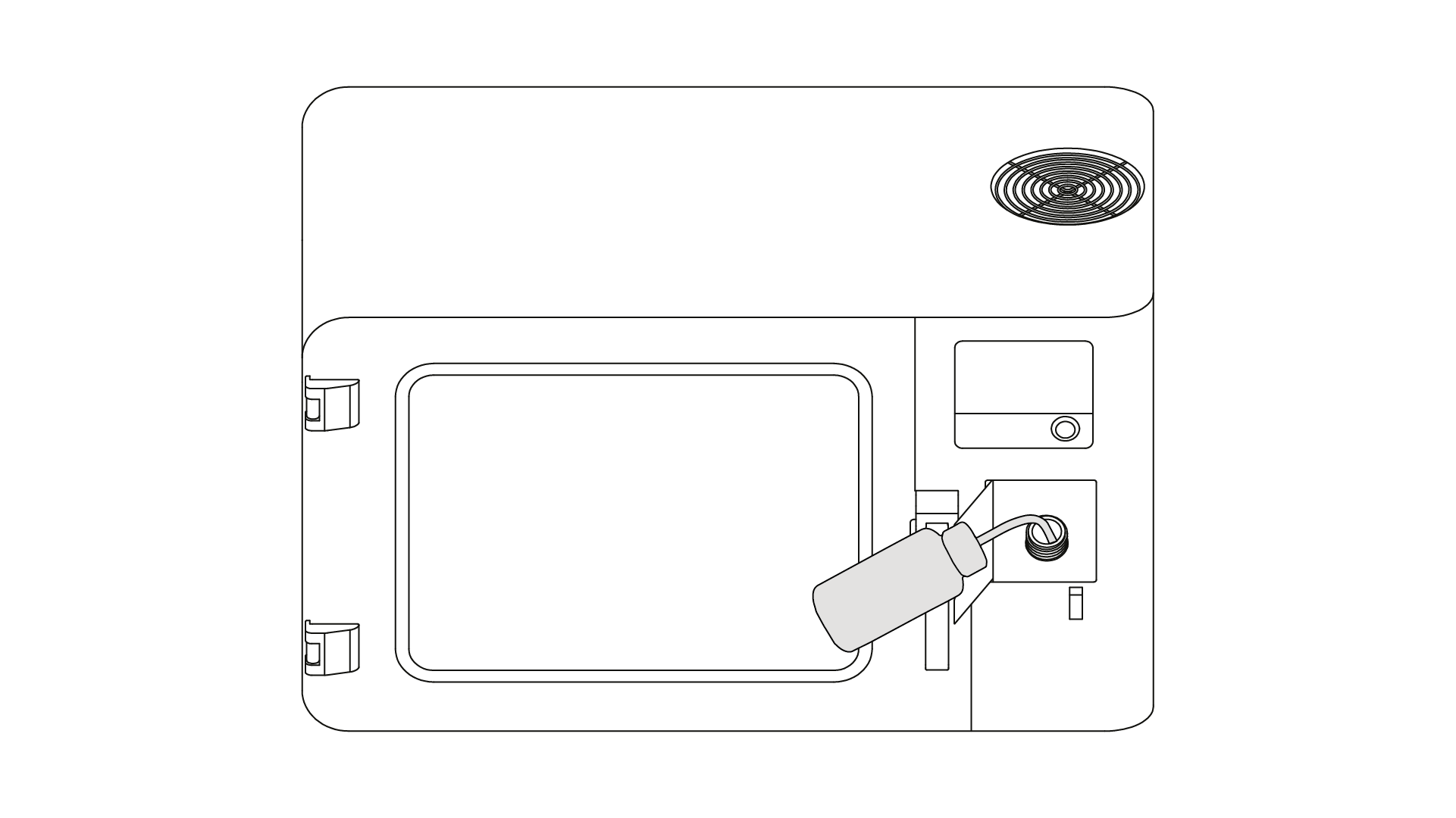 2. Prepare the wash bottle delivered with the device. Squeeze it and put its nozzle in the solvent tank. Release the bottle to retract as much solvent as possible.