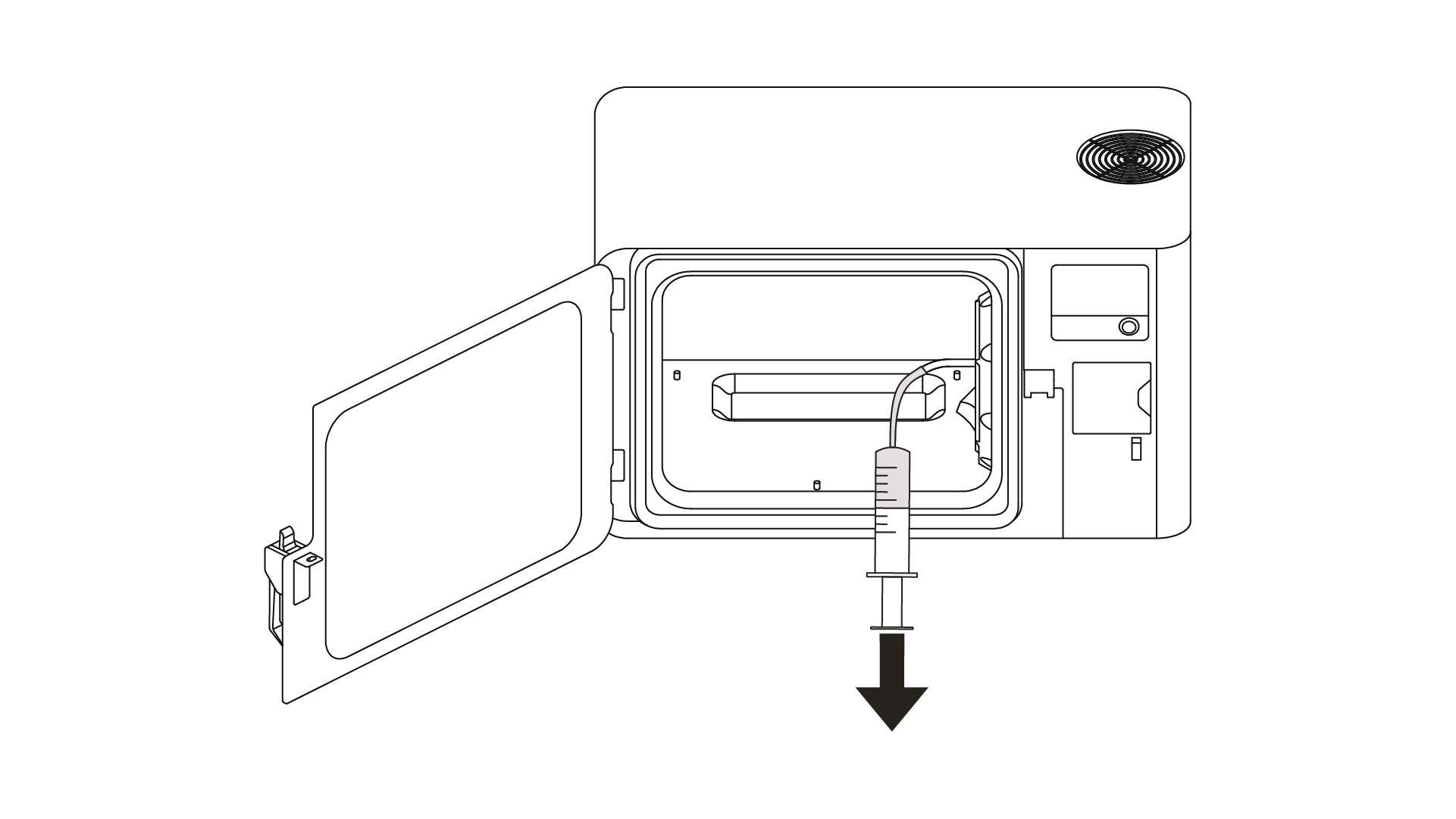 4. Remove the syringe from the device and pour the liquid into the container with solvent.