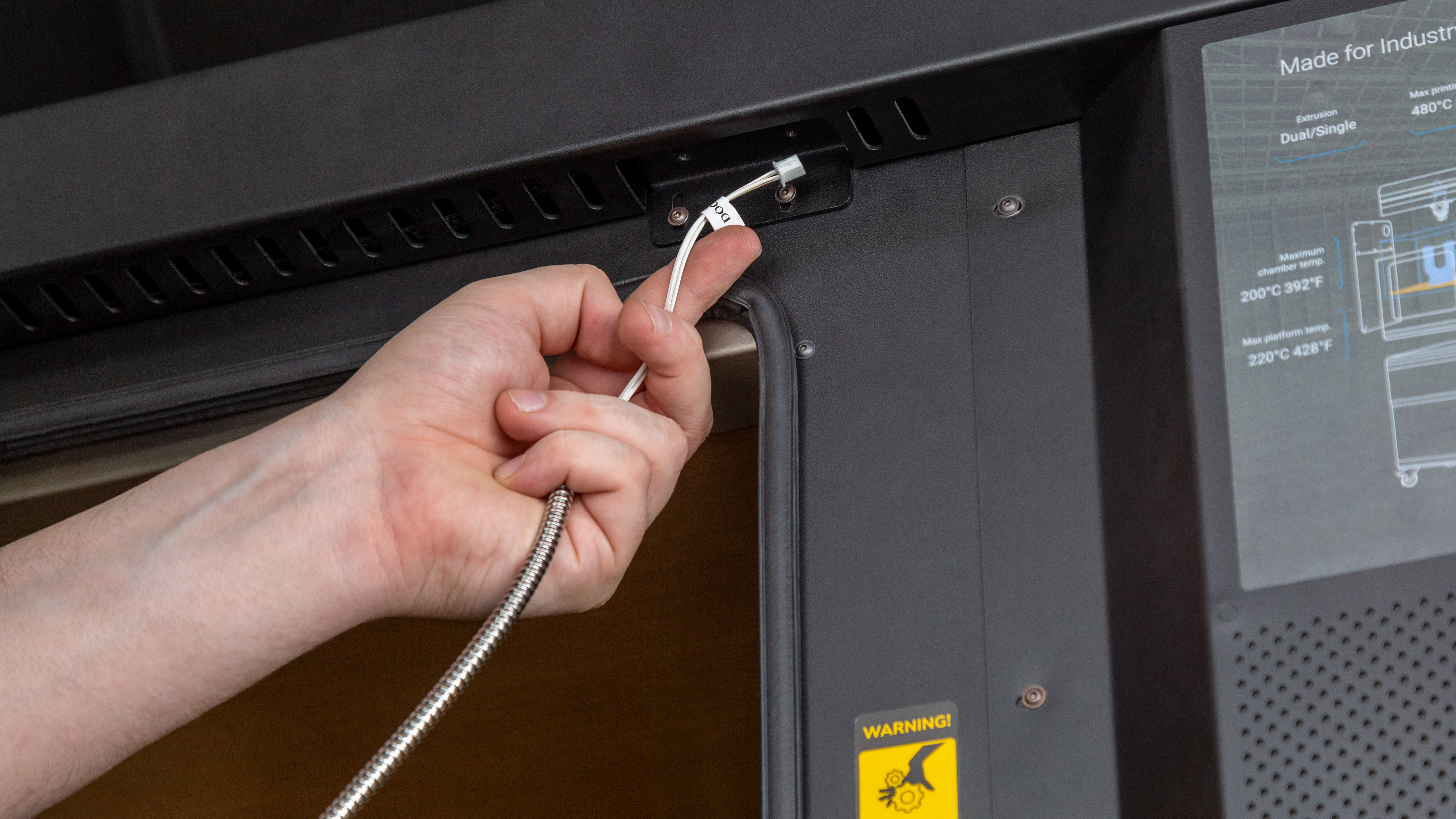 6 Moving the extruder 1 2 Move the extruder to the back of the housing in order to have easy access to the front right wiring cover in the extruder chamber