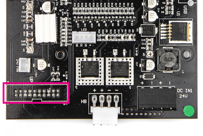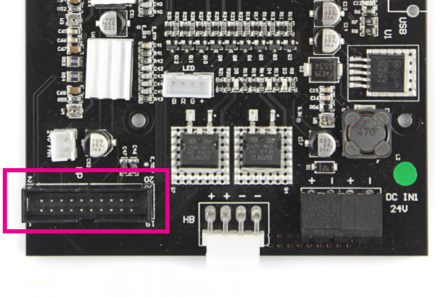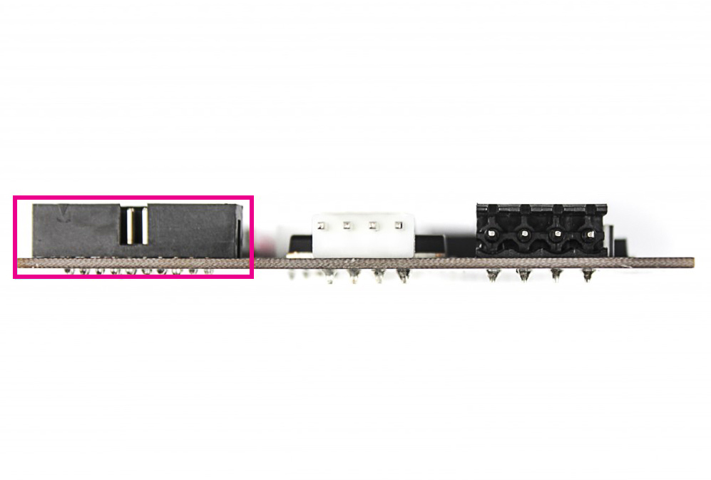 If the extruder cable you’re using has an adapter, separate the adapter from the cable so you can plug it into the new version of the motherboard.
