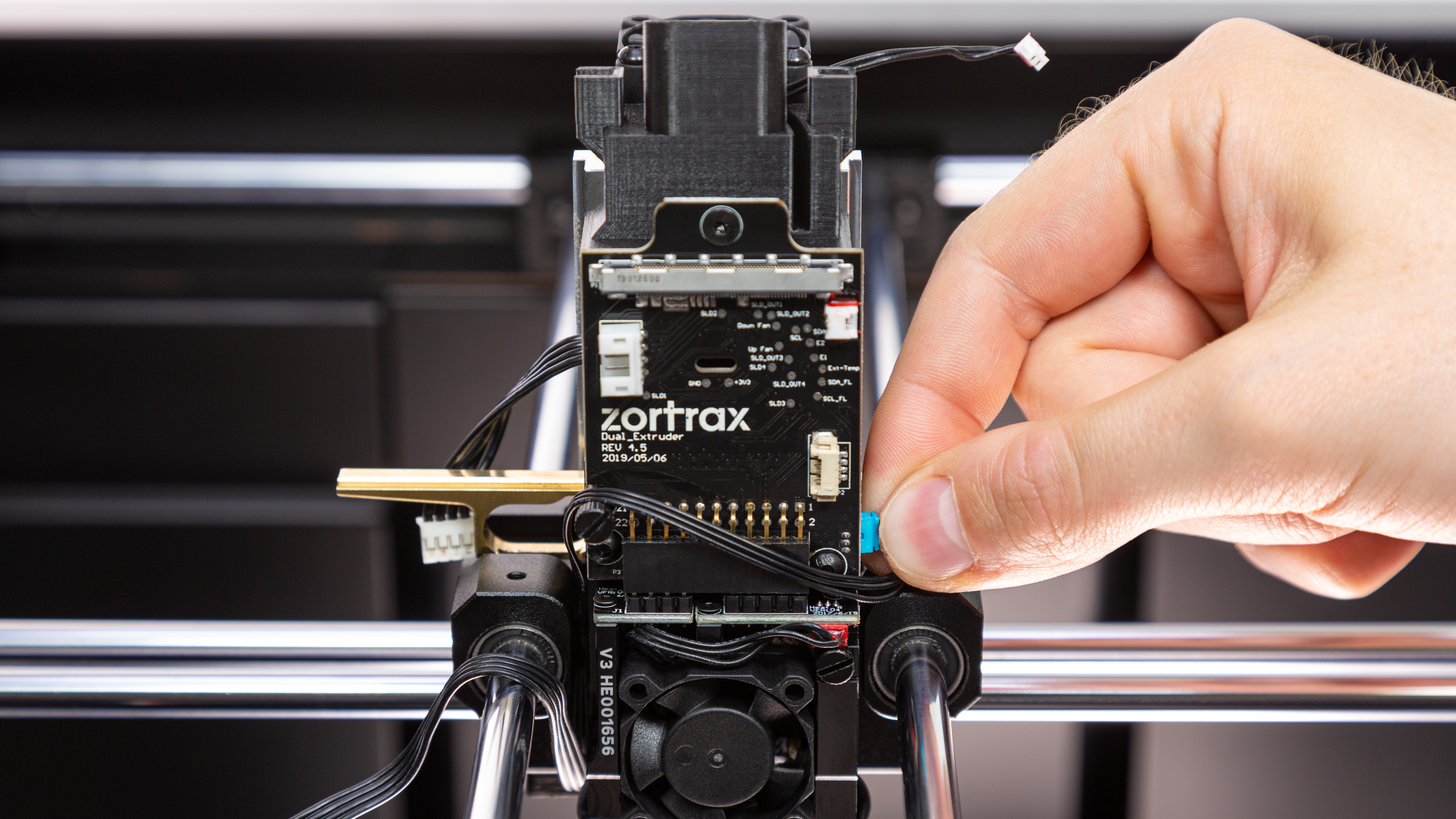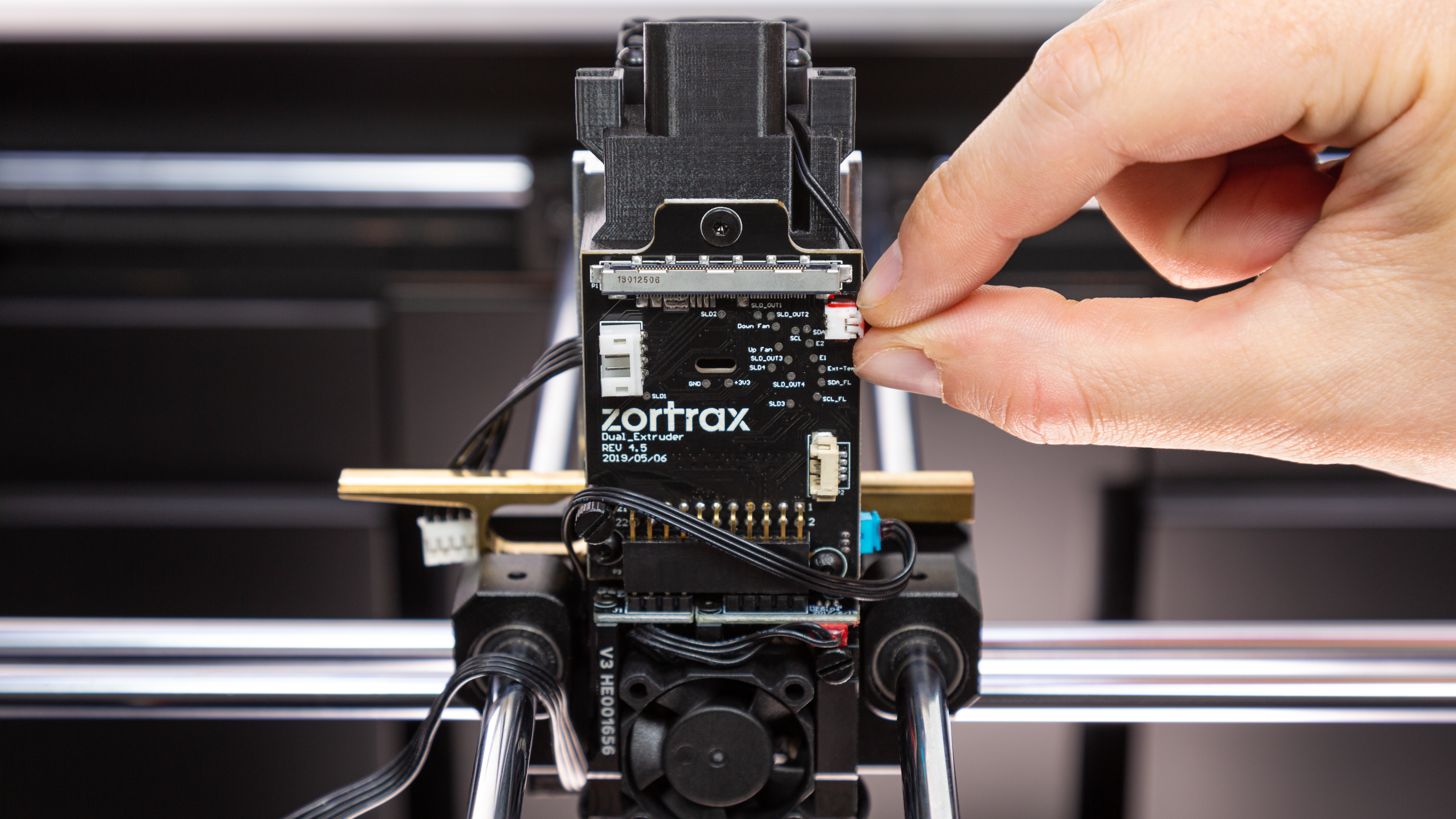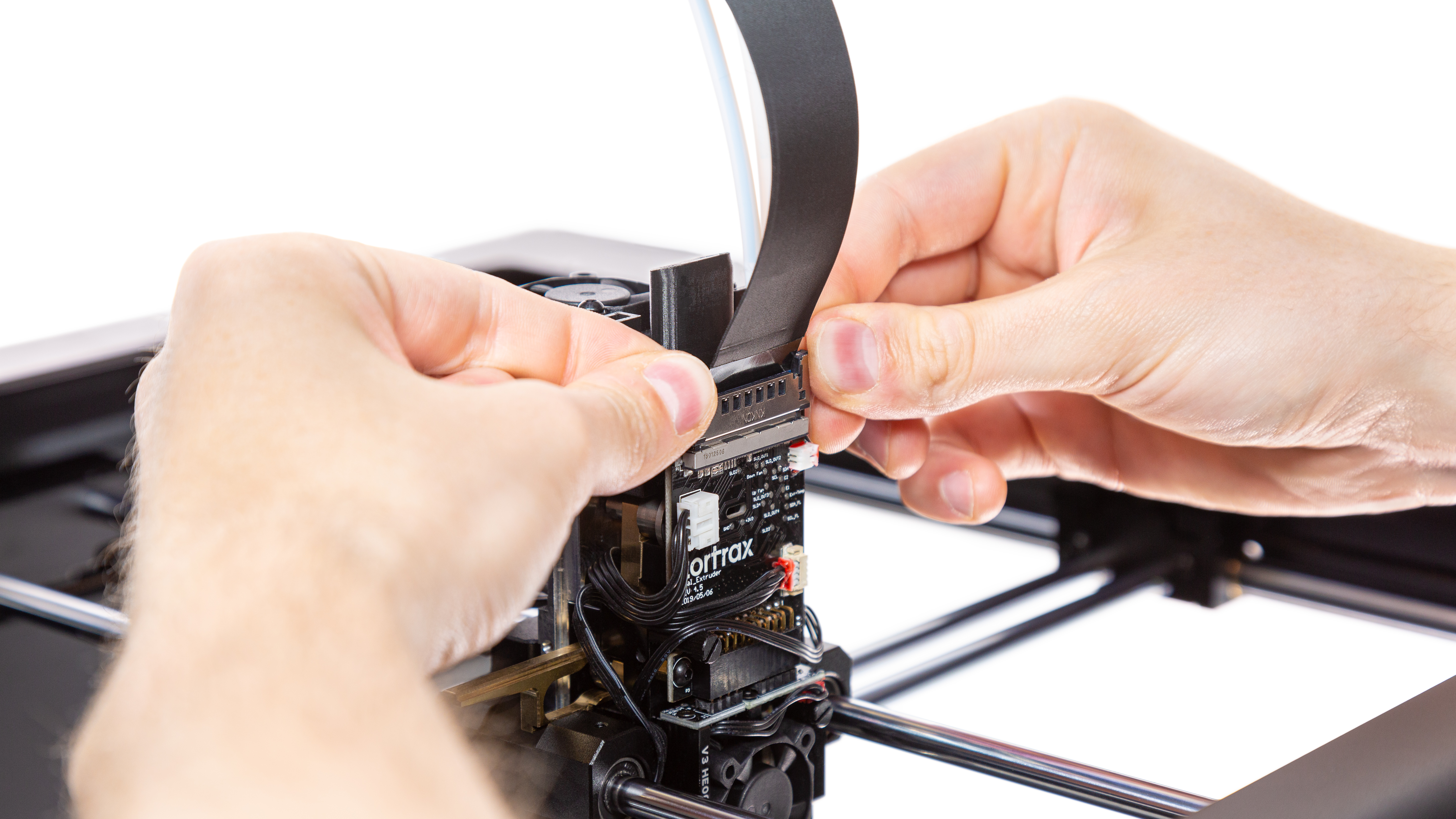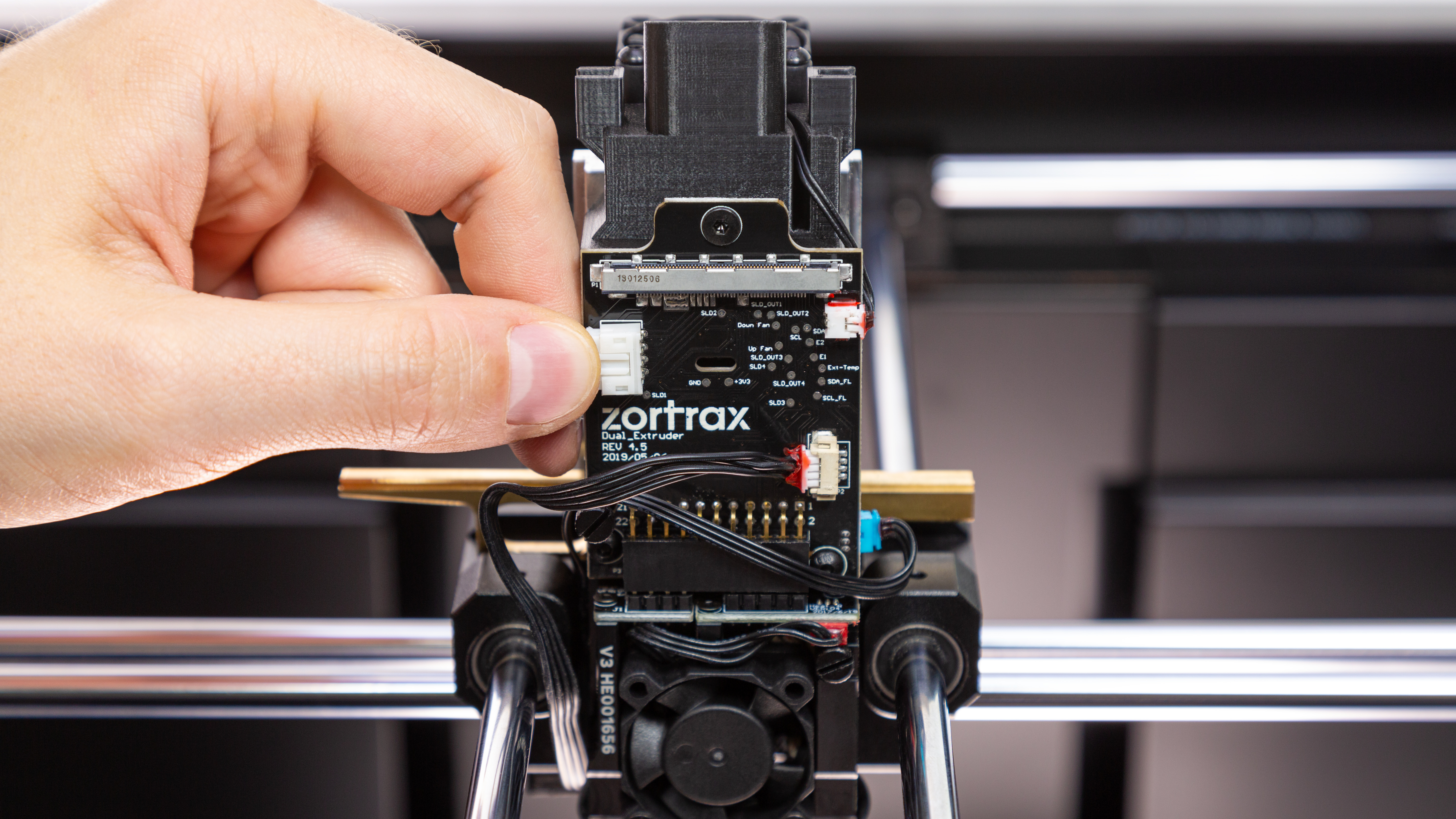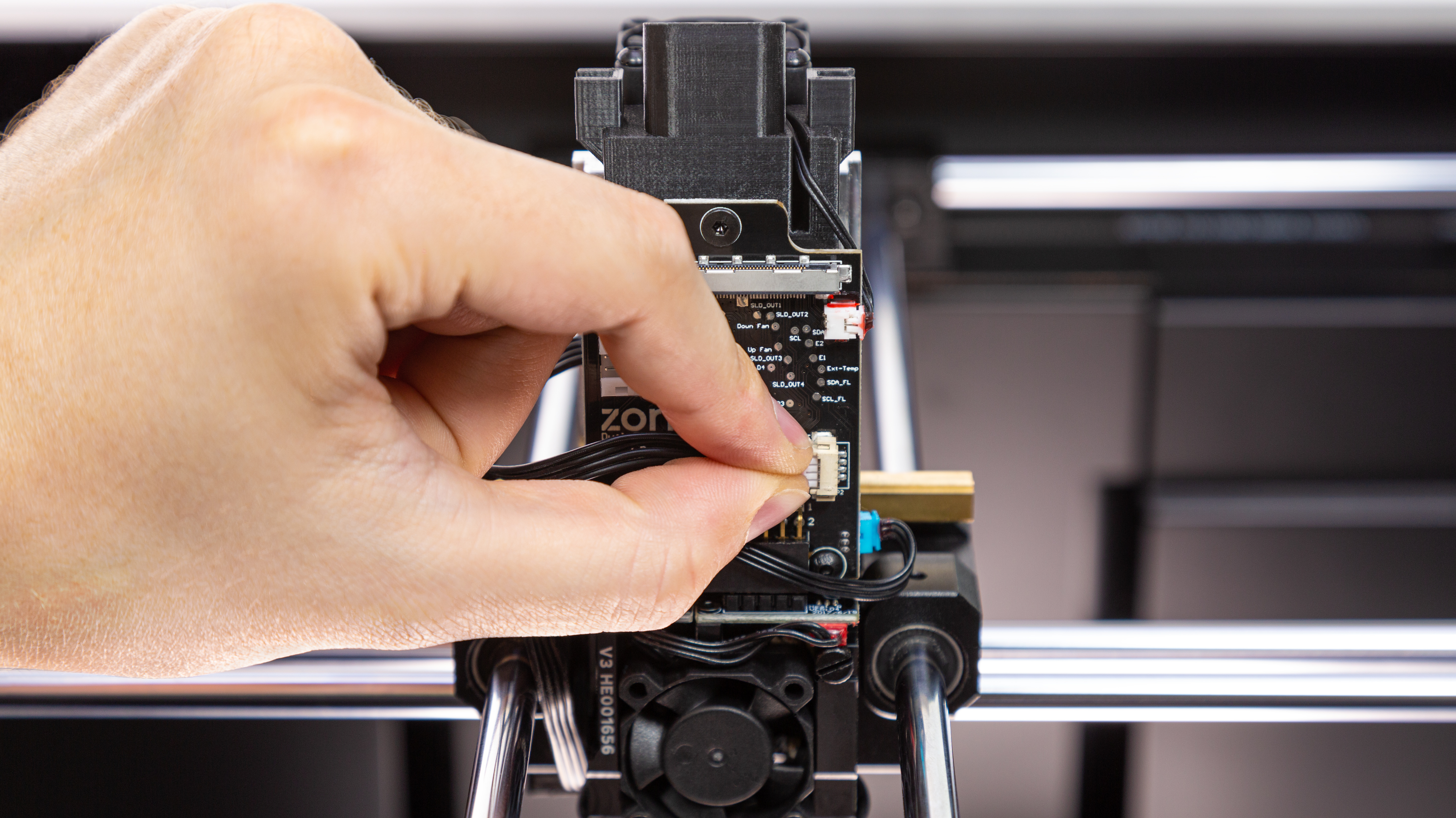 1. Unplug the extruder motor cable (the big white connector in the upper left-hand corner of the PCB).