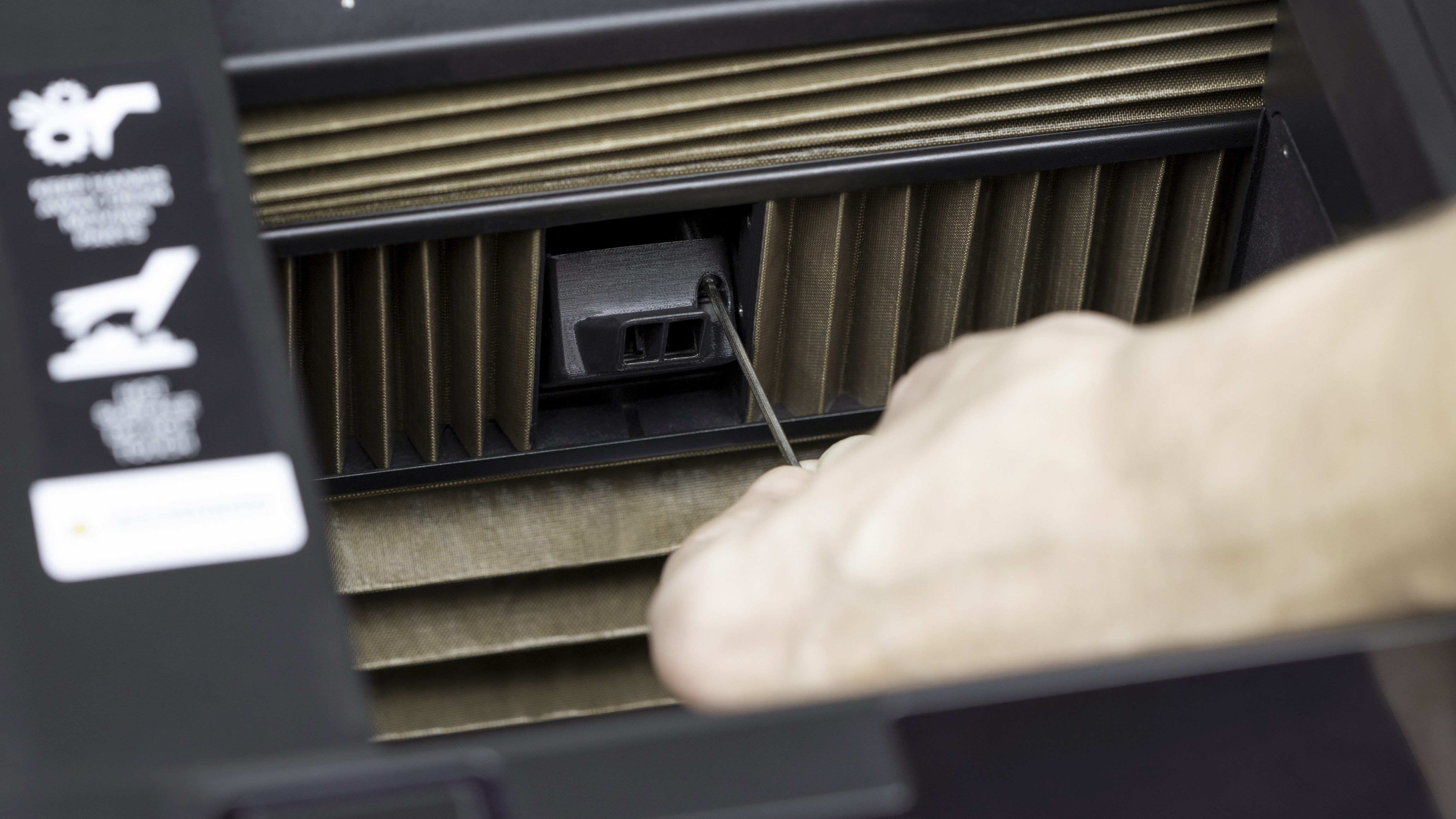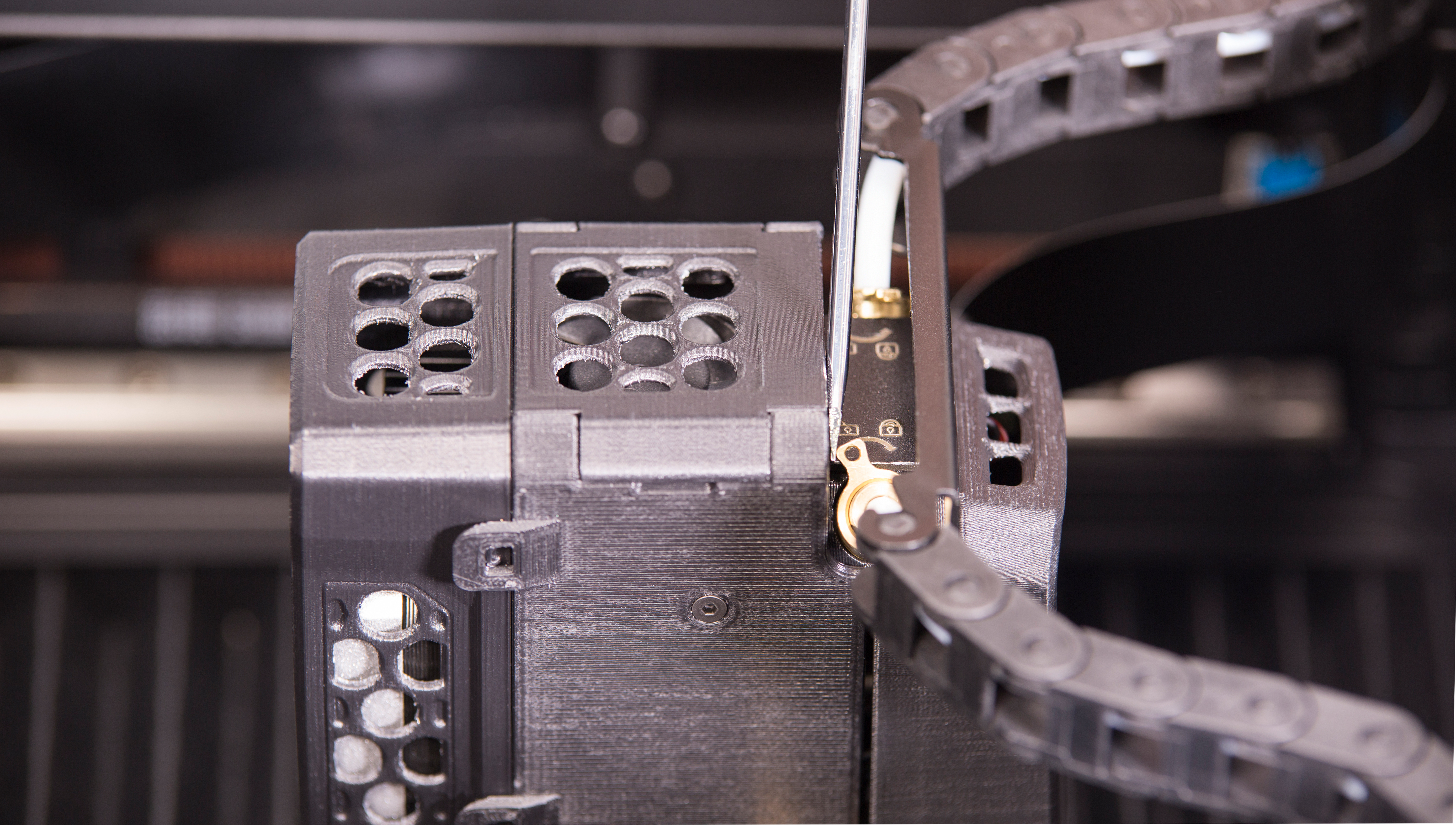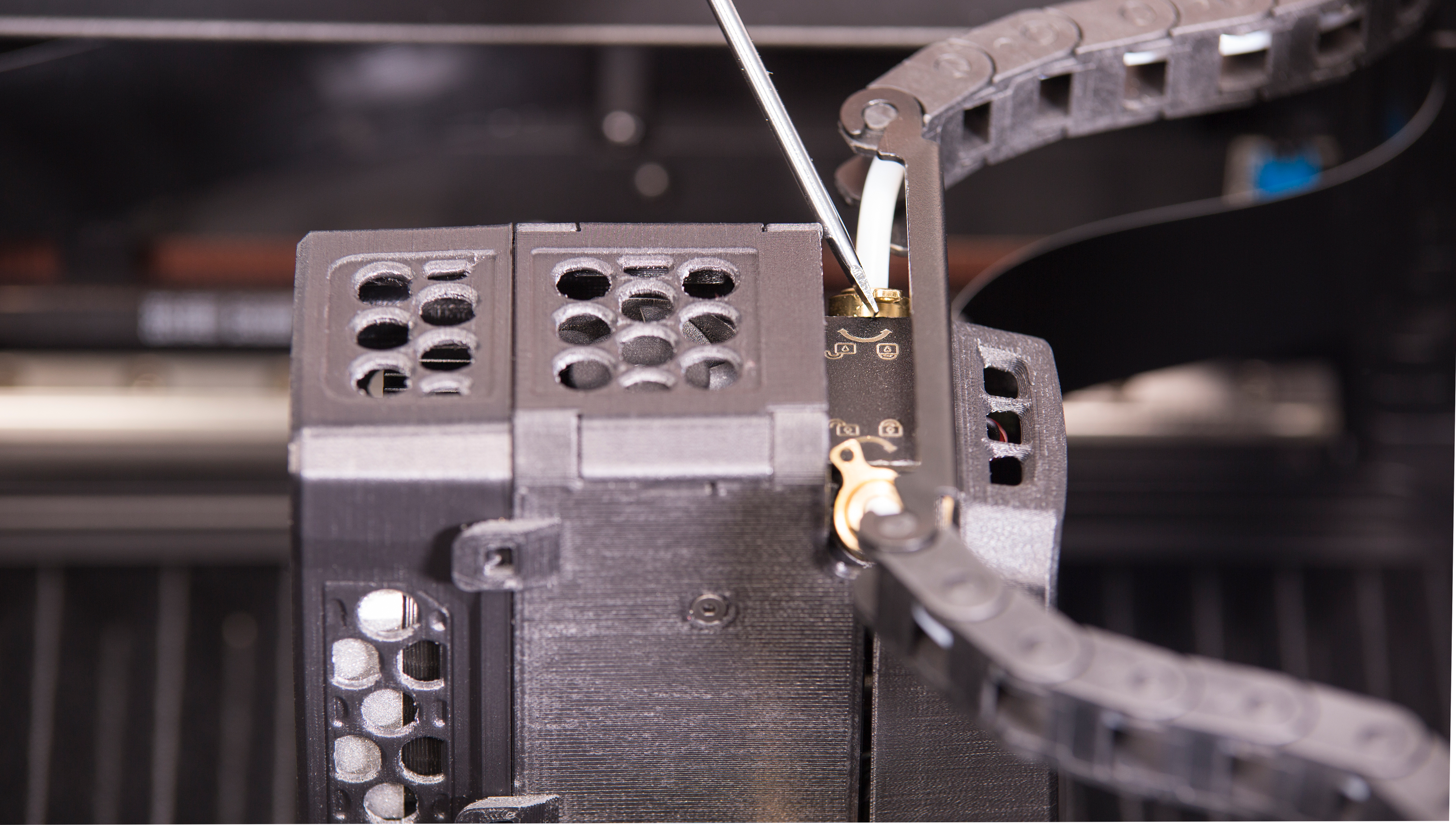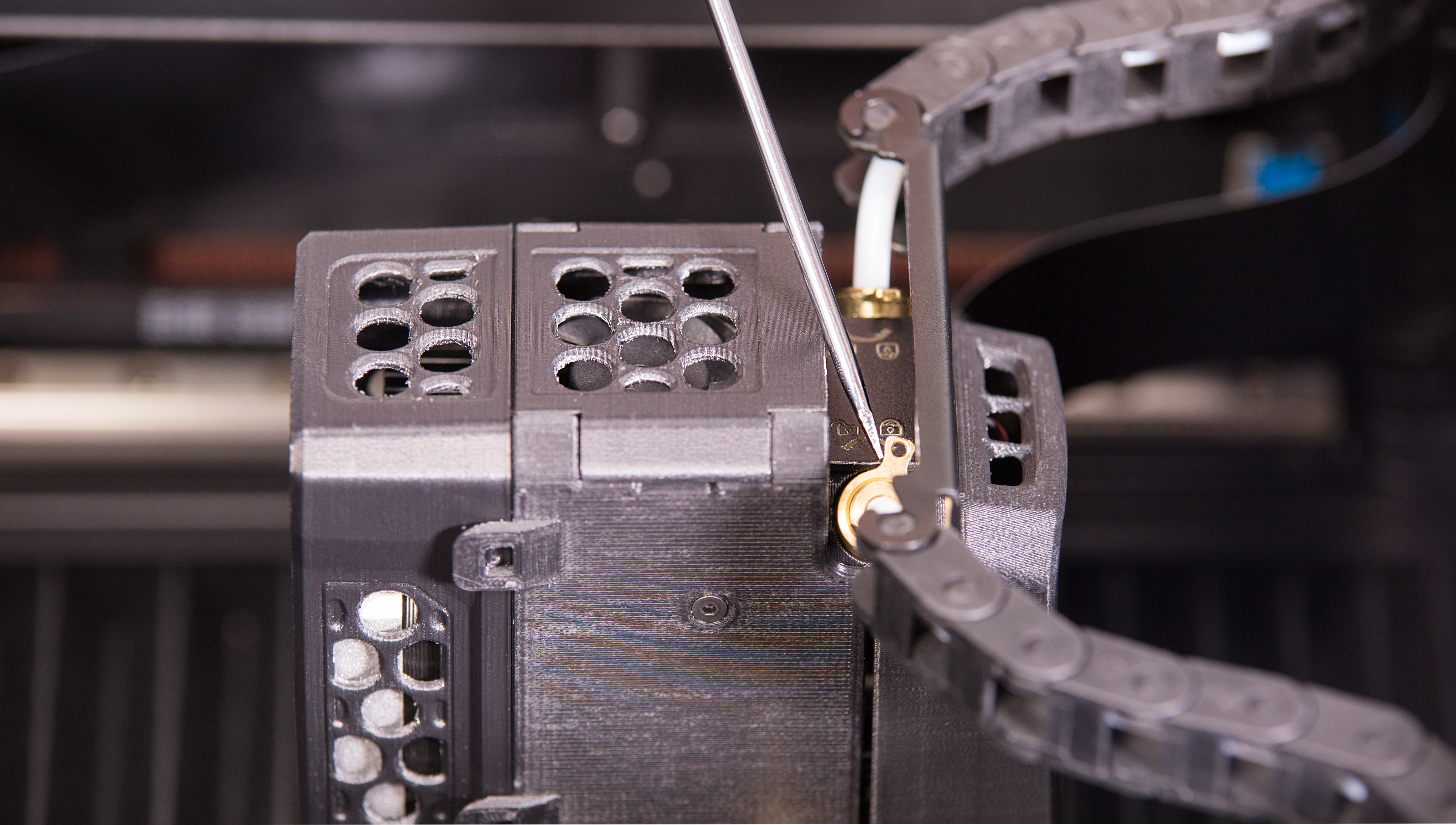 Lock the material guide tube switches on both sides of the extruder using a flathead screwdriver.