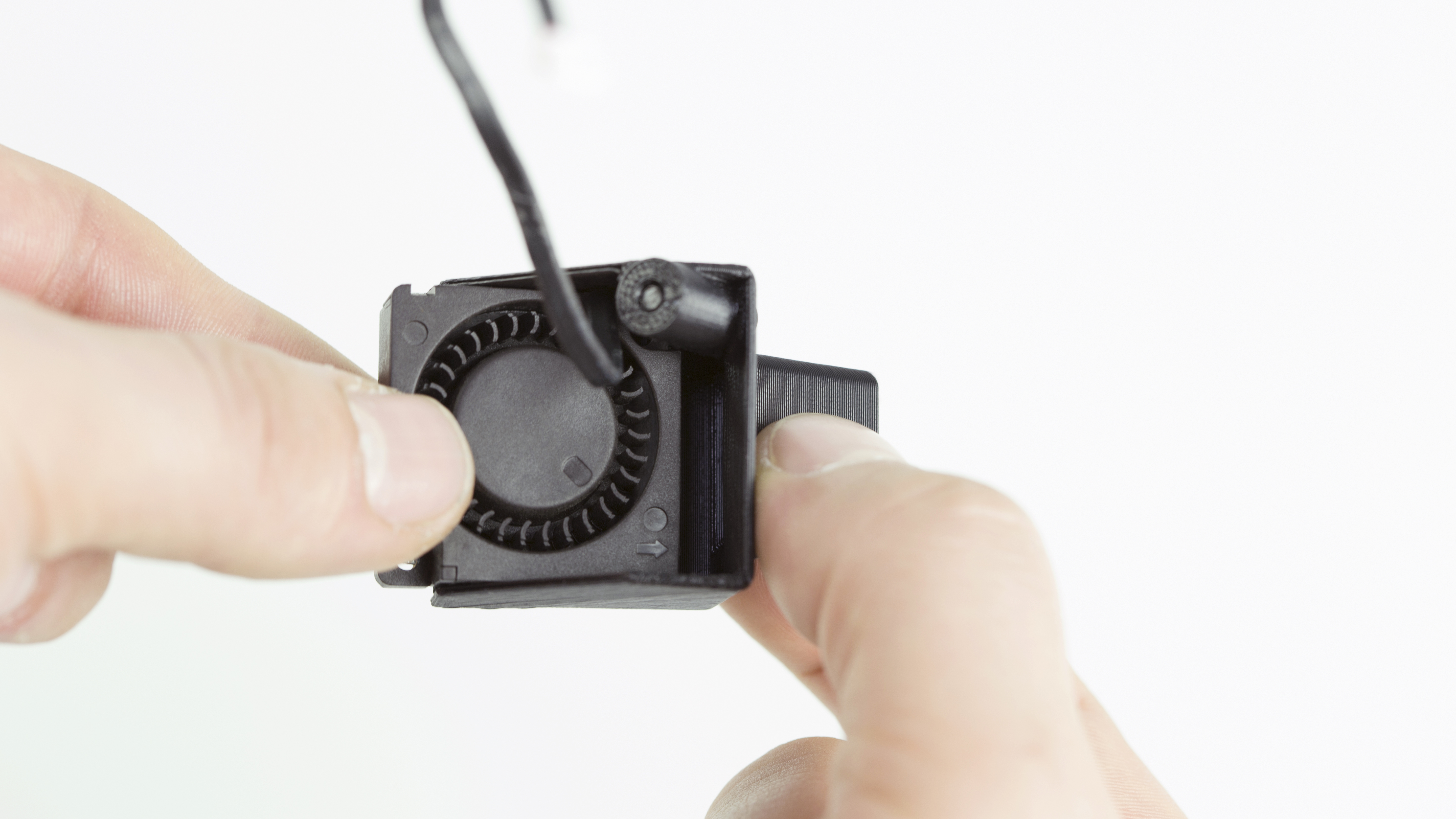 Secure the extruder lower fan with the screw.