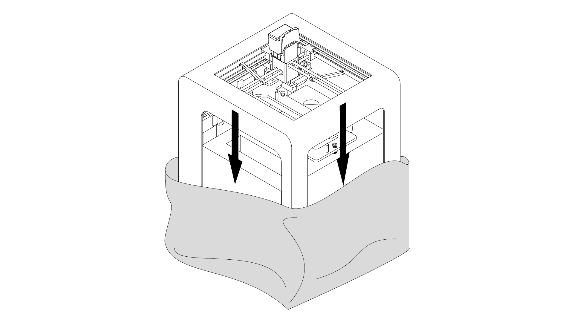 Take the 3D printer out of the box. When lifting or moving the printer, do not grab: