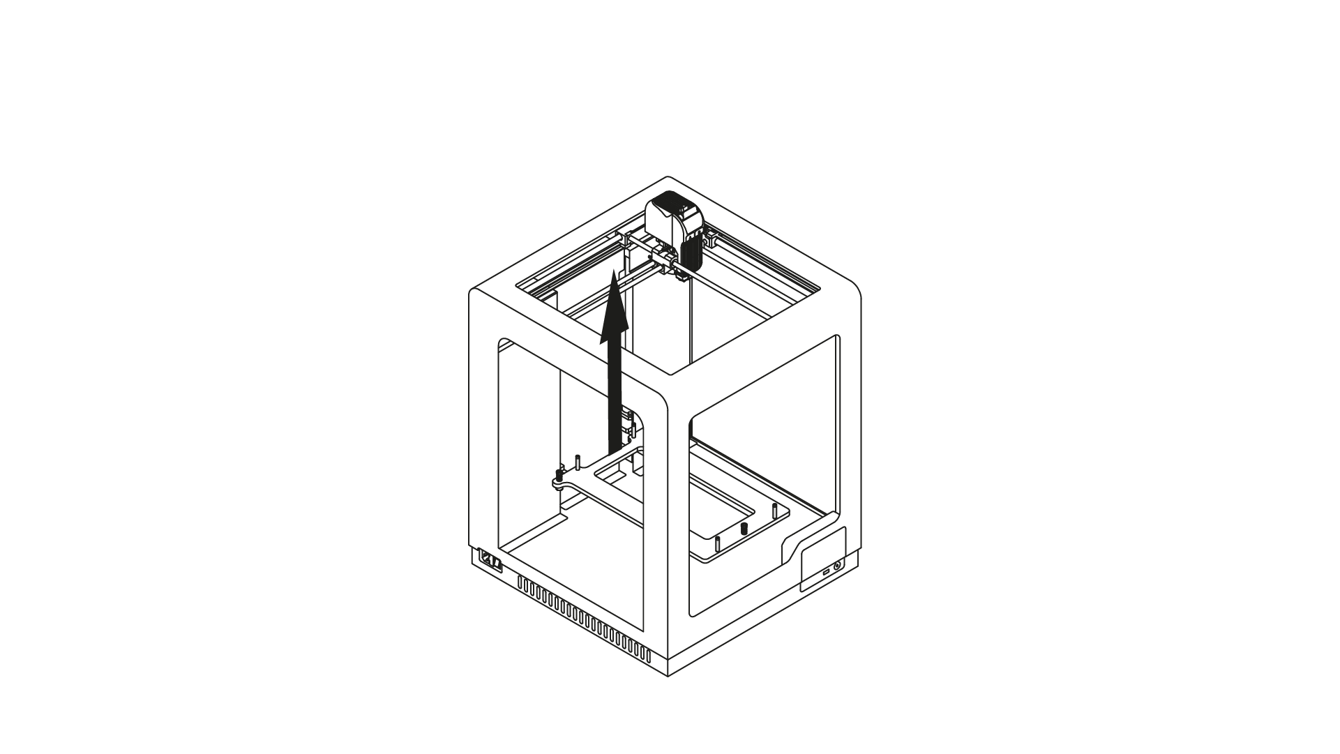 2. Move the extruder manually to the back right corner of the printer. Then, secure the extruder with the shipping clips.