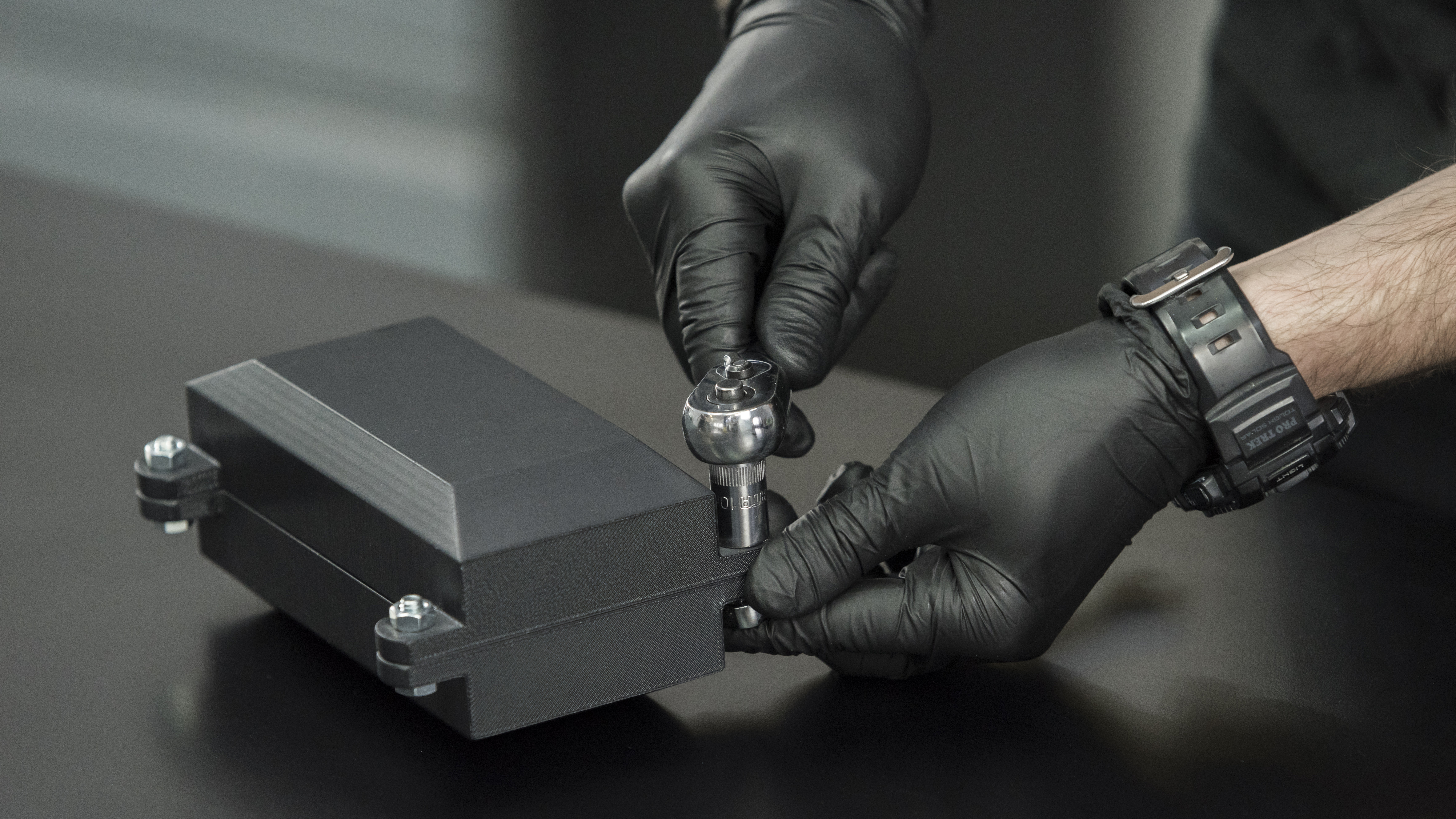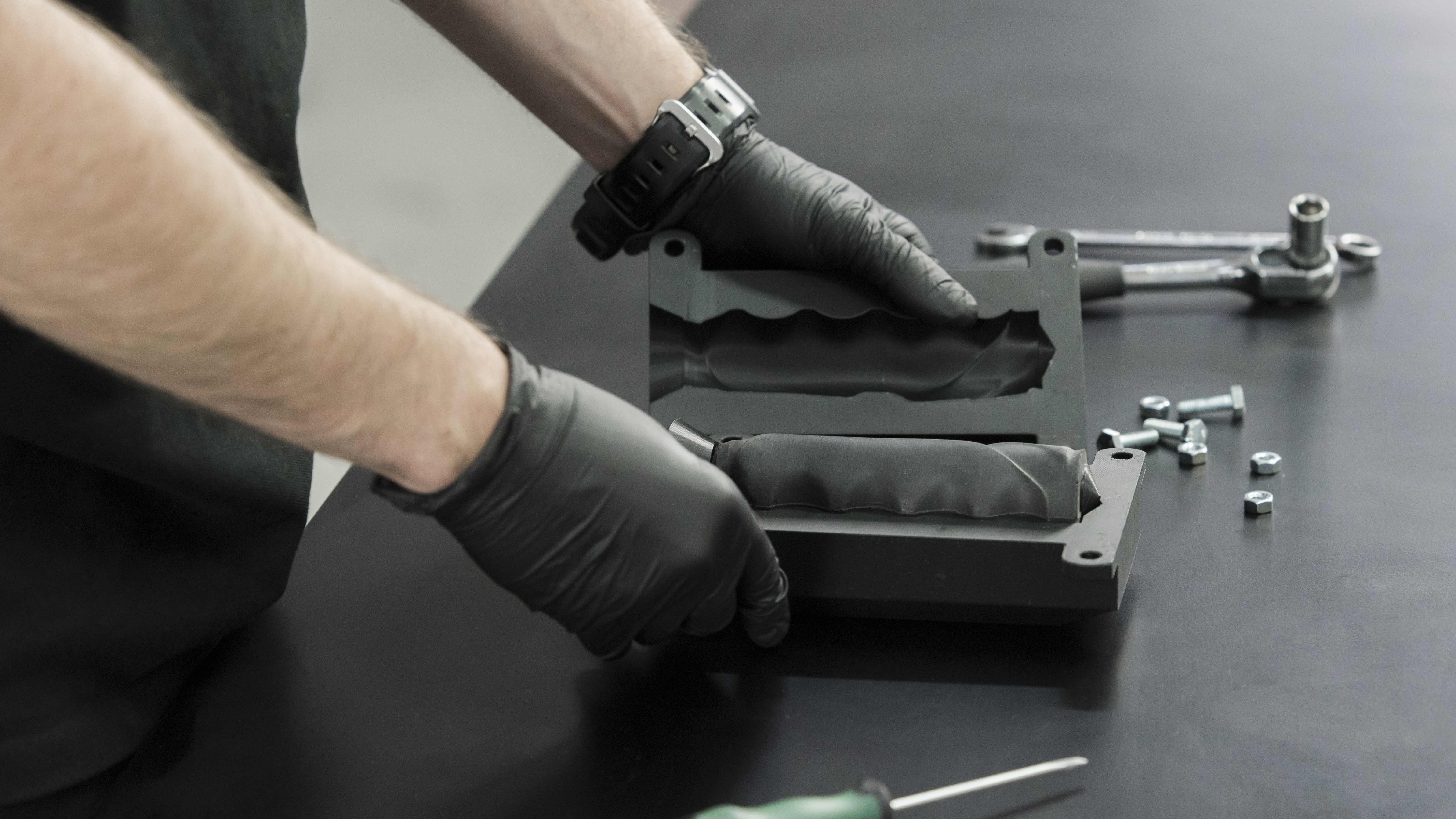 Join the parts of the mold and screw them together using wrenches.
