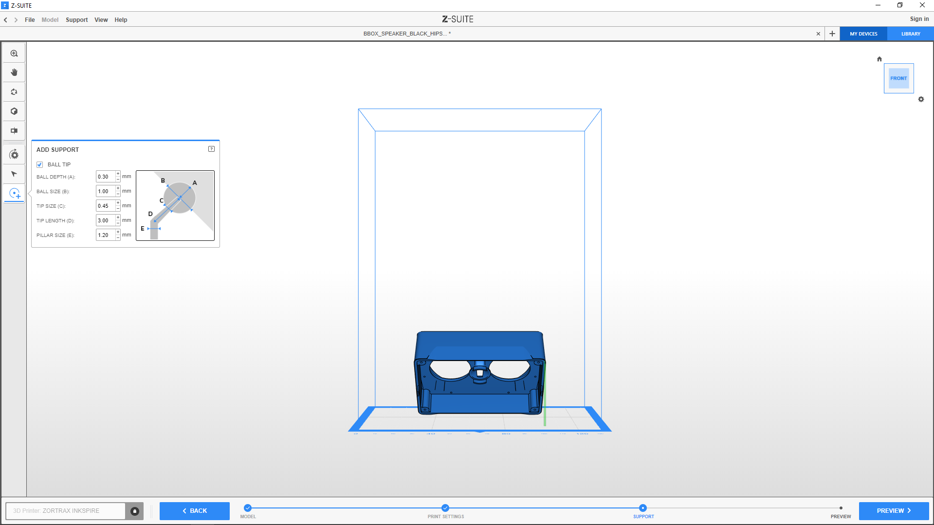 1. You can still add more pillars manually and modify them at any point of preparing supports for your model. It's possible to change the tip type, its depth, size and length as well as change the pillar size.