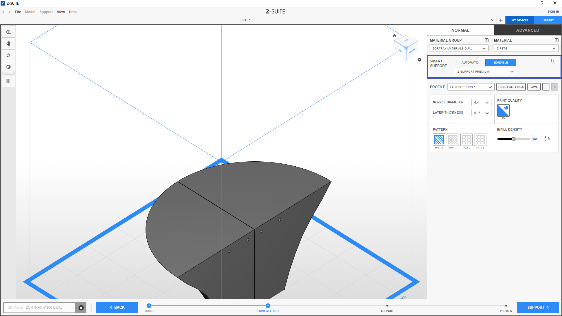 1. Select EDITABLE in the Print settings menu to add generate editable support in the Support step.