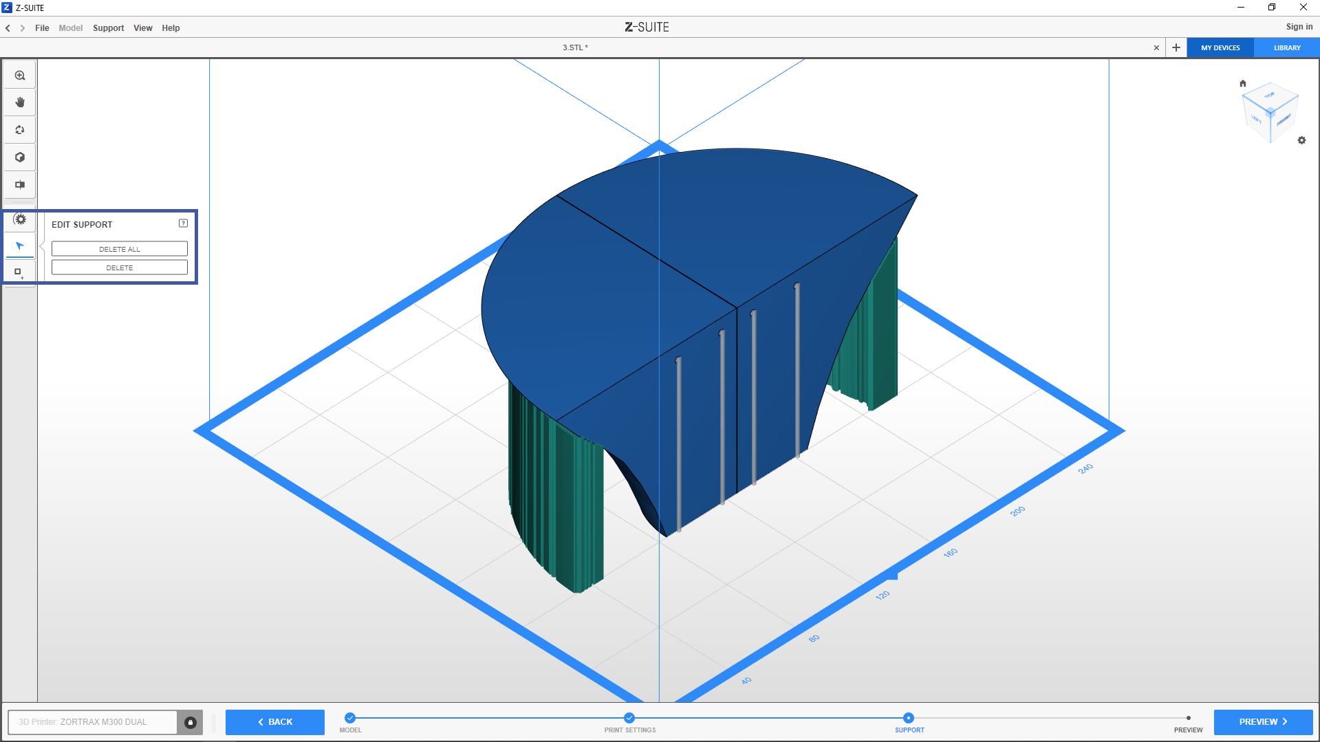 4. If you decide that the generated support structures are misplaced or unnecessary, you can delete them all at once or individually.