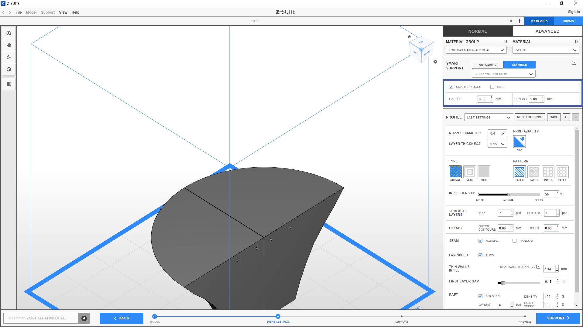 XY GAP – allows you to set a gap between the block of support and the model in the XY plane. This will make it easier for you to remove supports from the model once the printing process is finished.